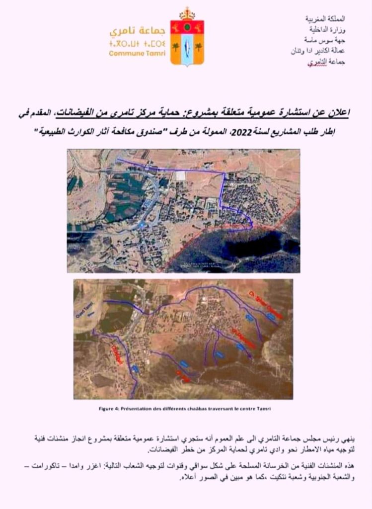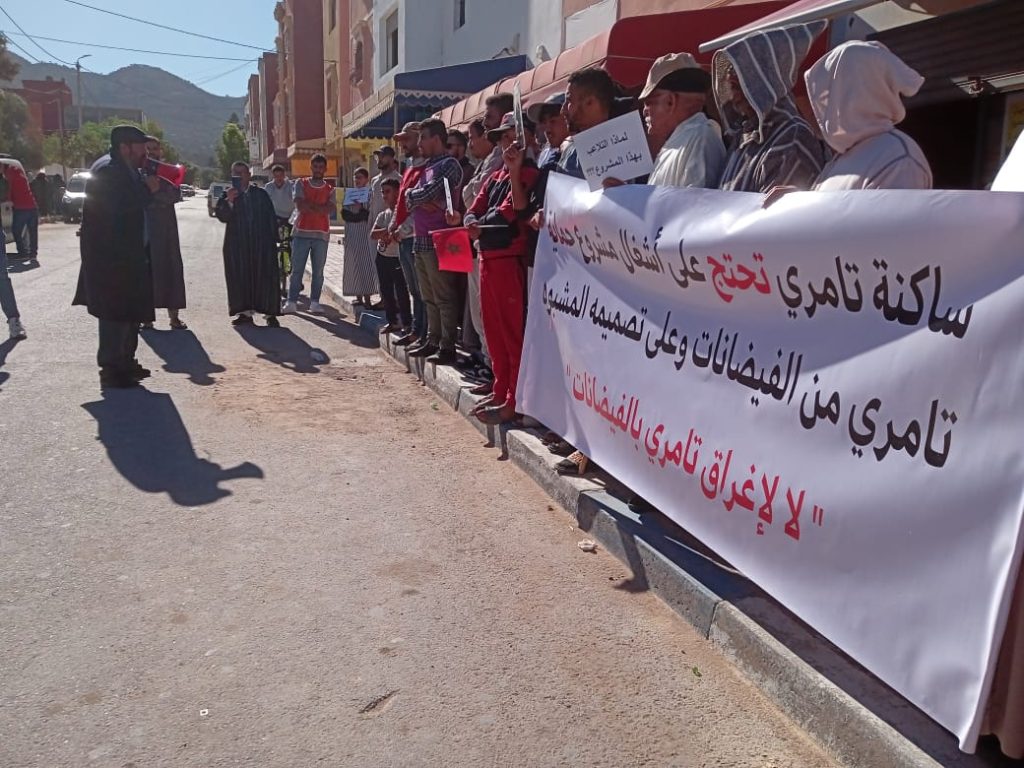 خرج عدد من سكان مركز جماعة التامري التابعة لعمالة أكادير إداوتنان، صباح اليوم الجمعة 13 دجنبر 2024 في وقفة احتجاجية أمام مقر جماعة التامري، احتجاجا على تصميم الدراسة الخاصة بمشروع حماية المنطقة من الفيضانات.
