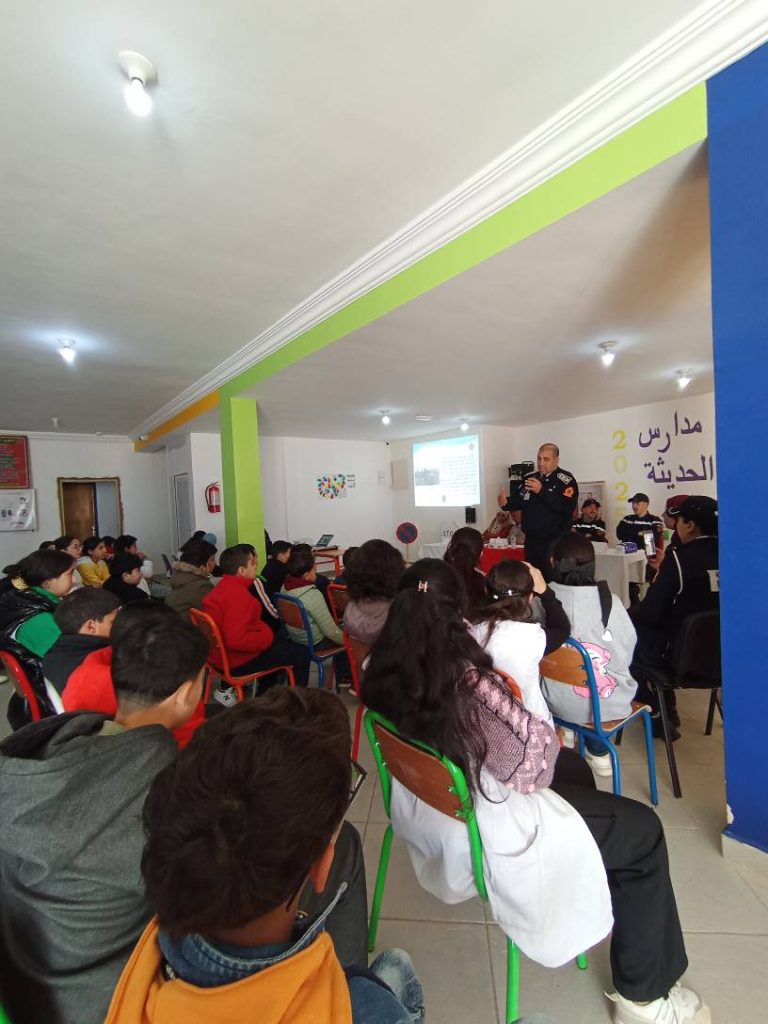 شهدت المؤسسة ورشات تطبيقية وعروضًا نظرية حول السلامة الطرقية، بالإضافة إلى ورشات تعبيرية للرسم، بهدف ترسيخ ثقافة احترام قوانين السير لدى التلاميذ.