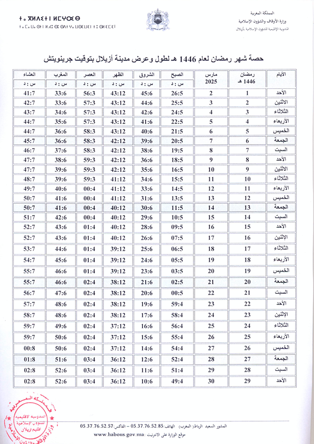 مواقيت الصلاة لشهر رمضان الابرك بإقليم أزيلالمجتمع إدارة الموقع نشر في 1 مارس 2025 الساعة 19 و 46 دقيقة CREATOR: gd-jpeg v1.0 (using IJG JPEG v62), default quality مشاركة بفايسبوكFacebookFacebookمشاركة بتويترTwitterTwitter مشاركة بواتسابWhatsAppWhatsApp Share to ارسال ايميلEmailEmail مشاركة بلينكدانLinkedInLinkedInمشاركة بمسنجرMessengerMessenger طباعةPrintطباعة رابط المشاركة : #رمضان_مبارك #مواقيت_الصلاة #إقليم_أزيلال #أذان_الفجر #أذان_المغرب #الصلاة_في_رمضان #التقويم_الهجري #رمضان_1445 #عبادات #أزيلال