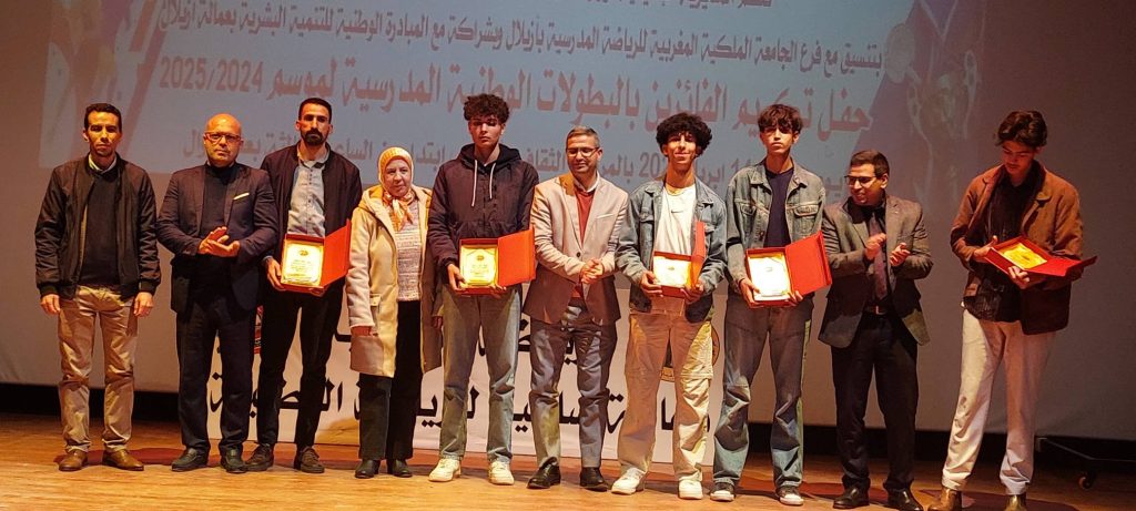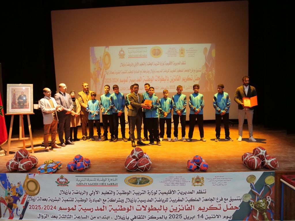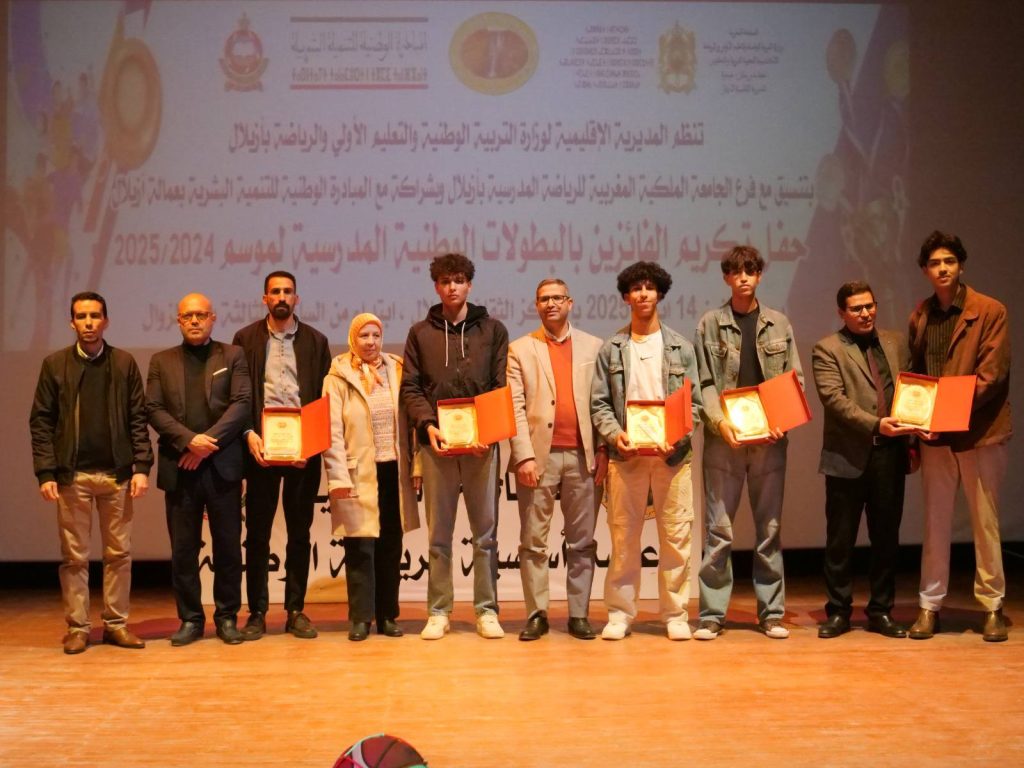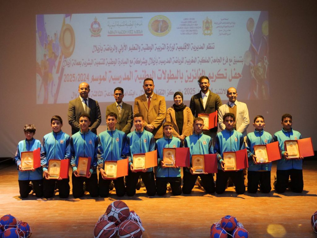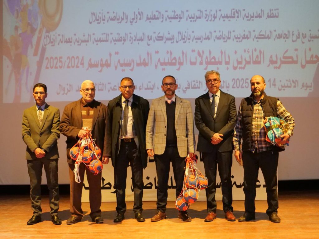 في أجواء احتفالية مفعمة بالفخر والاعتزاز، نظمت المديرية الإقليمية لوزارة التربية الوطنية والتعليم الأولي والرياضة بأزيلال، بتنسيق مع الفرع المديري للرياضة المدرسية، وبشراكة مع المبادرة الوطنية للتنمية البشرية، حفلًا تكريميًا على شرف أبطال الرياضة المدرسية المتوجين خلال البطولة الوطنية للموسم الدراسي الجاري.