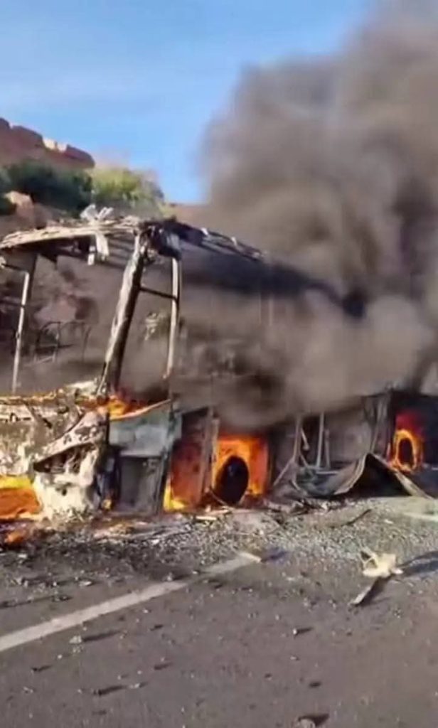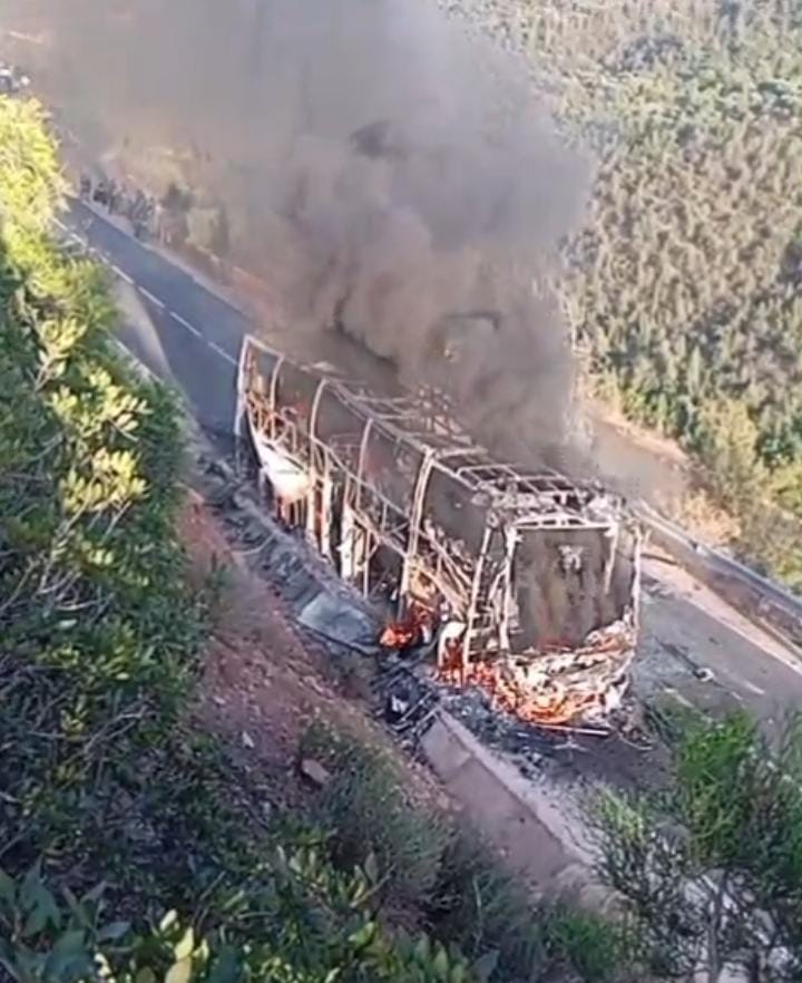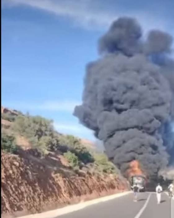 شهدت الطريق الوطنية رقم 25، الرابطة بين أفورار وبين الويدان، مساء اليوم حادث احتراق حافلة تقل 45 راكبة وراكبًا قادمين من المحمدية في رحلة نحو شلالات أوزود.