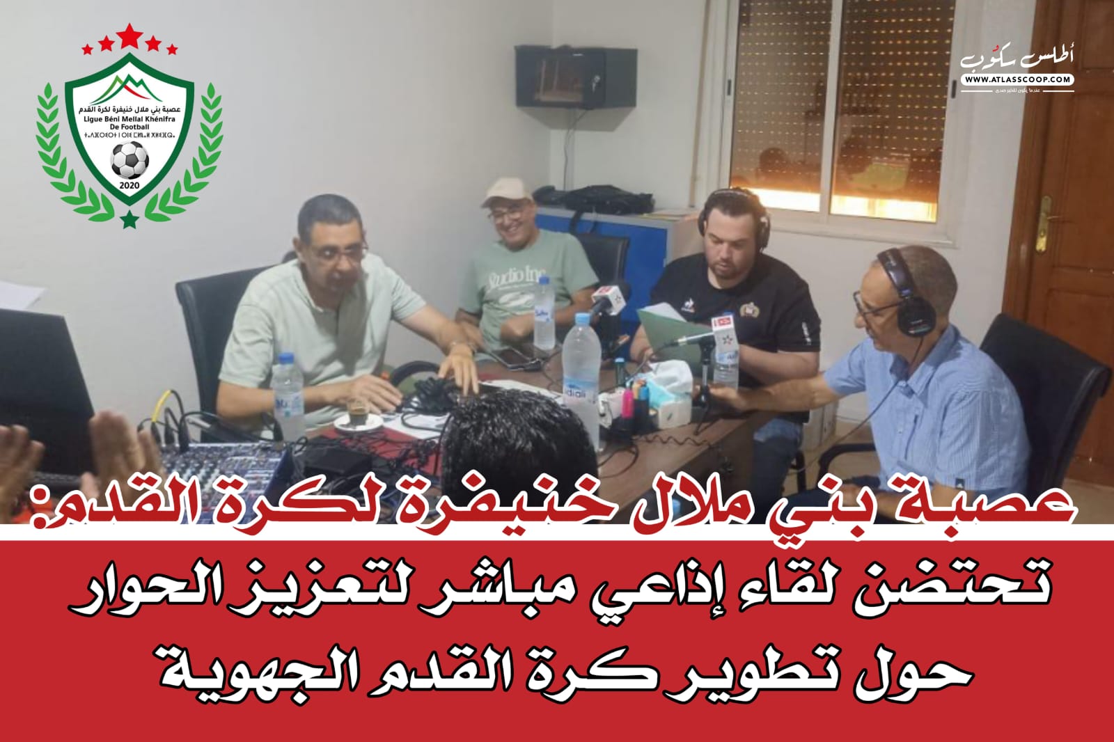 في إطار سياسة الانفتاح والتواصل التي تنهجها العصبة الجهوية لكرة القدم بني ملال – خنيفرة، احتضن مقر العصبة مساء يوم الأحد 3 غشت 2025 لقاءً إذاعيا مباشراً عبر أثير الإذاعة الوطنية.