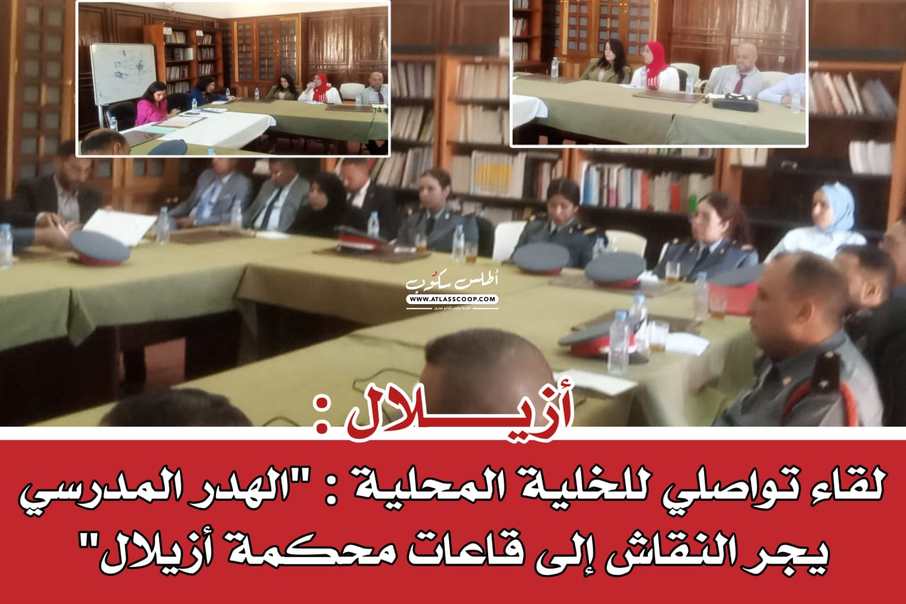 لقاء الخلية المحلية بالمحكمة الابتدائية بأزيلال خلص إلى قناعة مشتركة: أن مواجهة الهدر المدرسي تتطلب تعبئة جماعية، تضم القضاء، الأمن، التعليم، الجماعات الترابية، المجتمع المدني، والأسر.
