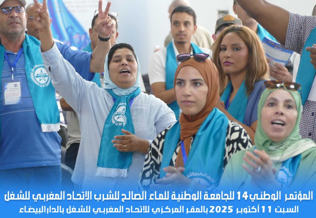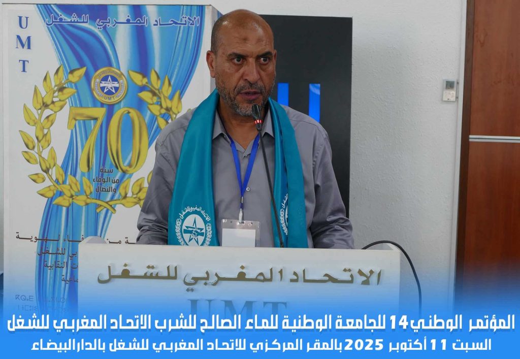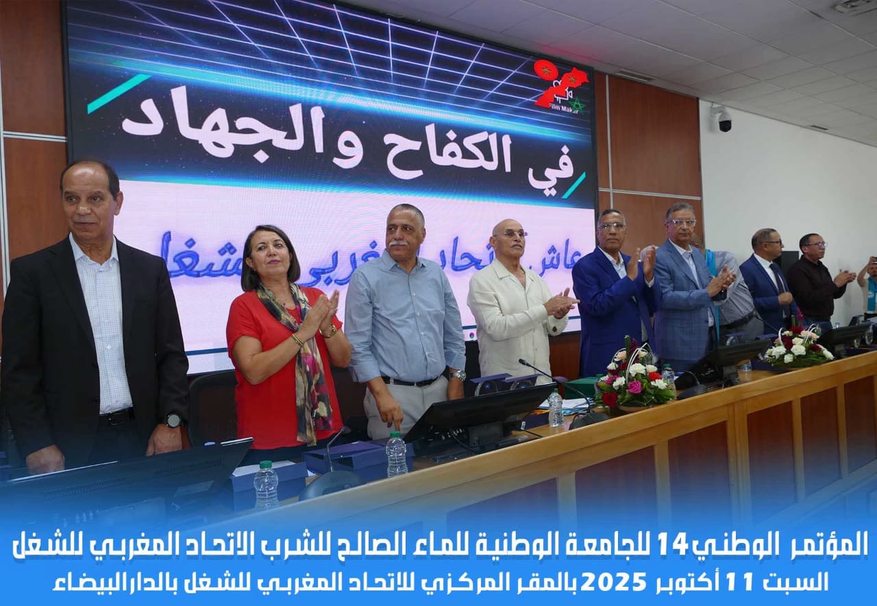 انعقد يوم السبت 11 أكتوبر 2025 بالمقر المركزي للاتحاد المغربي للشغل بالرباط، المؤتمر الرابع عشر للجامعة الوطنية للماء الصالح للشرب، برئاسة الأخ الأمين العام للاتحاد المغربي للشغل، وتحت شعار قوي يختزل المرحلة: