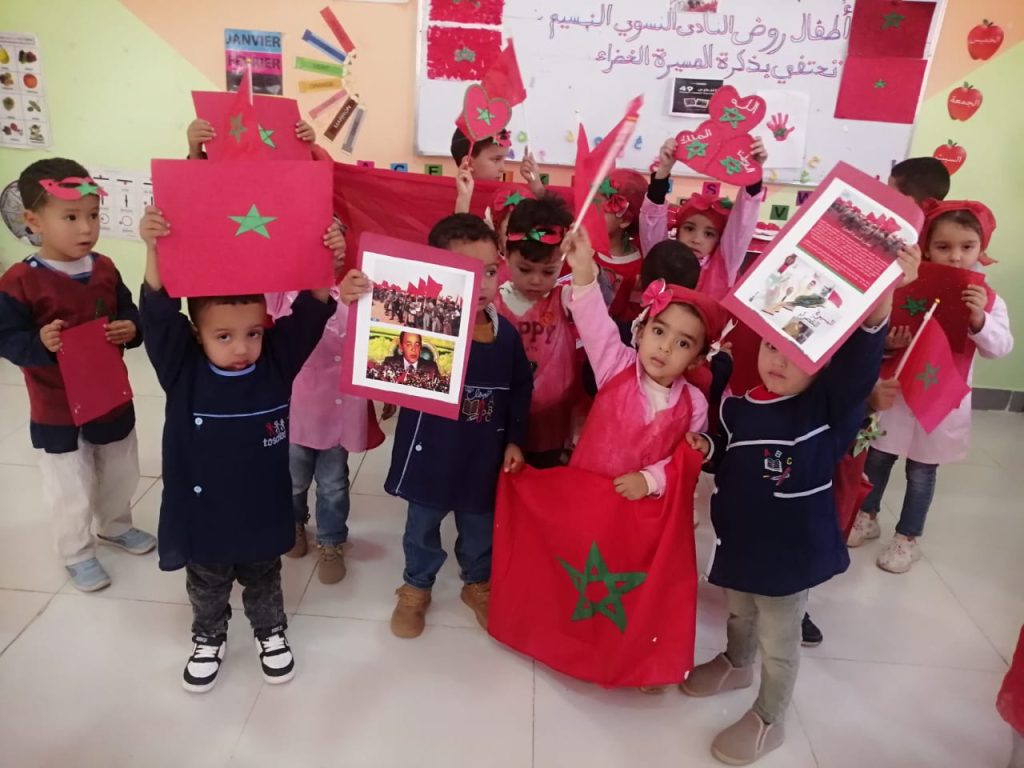 وأكدت الأطر التربوية بالمناسبة أن هذه المبادرة تندرج في إطار ترسيخ القيم الوطنية لدى الناشئة، وغرس معاني المواطنة والاعتزاز بالهوية المغربية منذ السنوات الأولى من العمر، معتبرين أن المشاركة في الاحتفالات الوطنية تشكل وسيلة بيداغوجية فعالة لترسيخ حب الوطن في نفوس الأطفال بطريقة تفاعلية وسلسة.