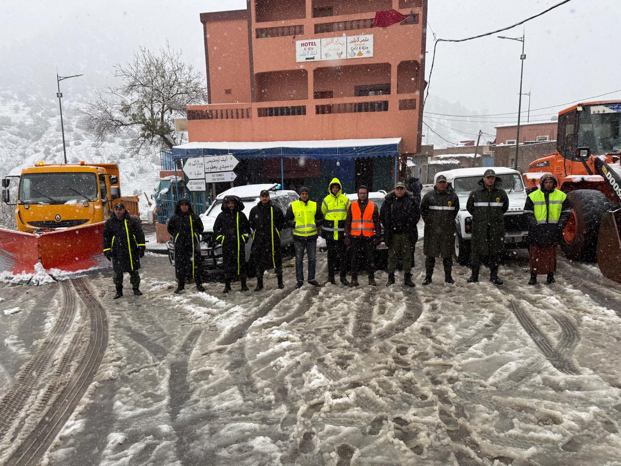 هذا، وتنفيذاً للتوصيات الصادرة عن اجتماع اللجنة الإقليمية لليقظة والتتبع المنعقد بعمالة إقليم أزيلال بتاريخ 15 دجنبر 2025، تم تسخير جميع الوسائل اللوجستيكية والبشرية المتاحة، بما في ذلك كاسحات الثلوج، وآليات الإزاحة، وسيارات الإسعاف، والشاحنات، إلى جانب تعبئة السلطات المحلية وأعوانها، والمصالح الأمنية، والأطر الطبية، ومصالح المديرية الإقليمية للتجهيز، وذلك من أجل توحيد الجهود وضمان التدخل السريع والفعّال.