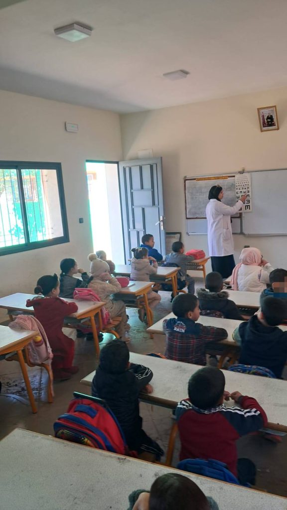 وشملت هذه الأنشطة خدمات الفحص والكشف عن اضطرابات البصر والسمع، وتتبع النمو، إلى جانب أنشطة تحسيسية لفائدة التلاميذ، وذلك بعدد من المؤسسات، من بينها: