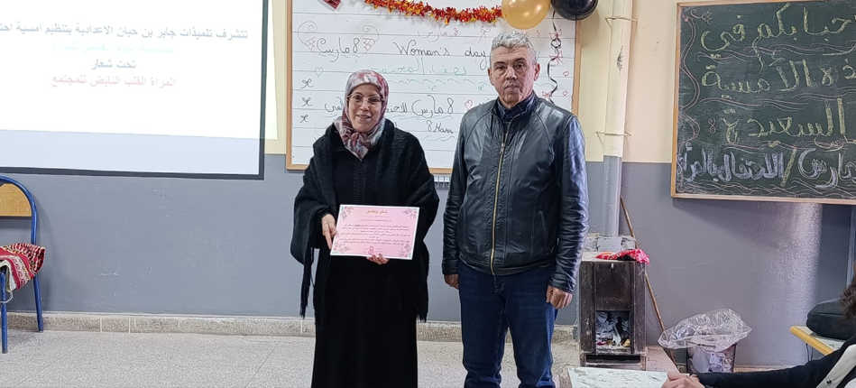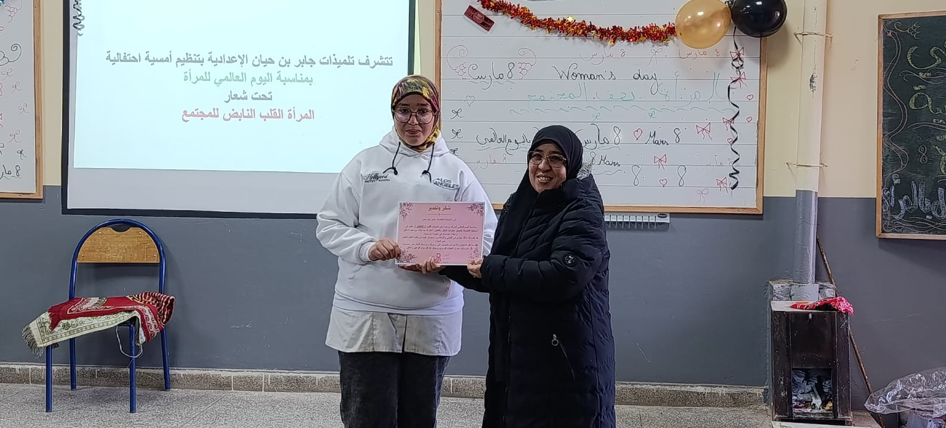 نظمت ثانوية جابر بن حيان الإعدادية، مساء الأربعاء 11 مارس الجاري، أمسية فنية احتفاءً باليوم العالمي للمرأة تحت شعار “المرأة عماد المجتمع”، في مبادرة تربوية تهدف إلى تثمين الدور الريادي الذي تضطلع به المرأة في تنمية المجتمع، وذلك في إطار تفعيل البرنامج السنوي للأنشطة الثقافية والفنية بالمؤسسة.