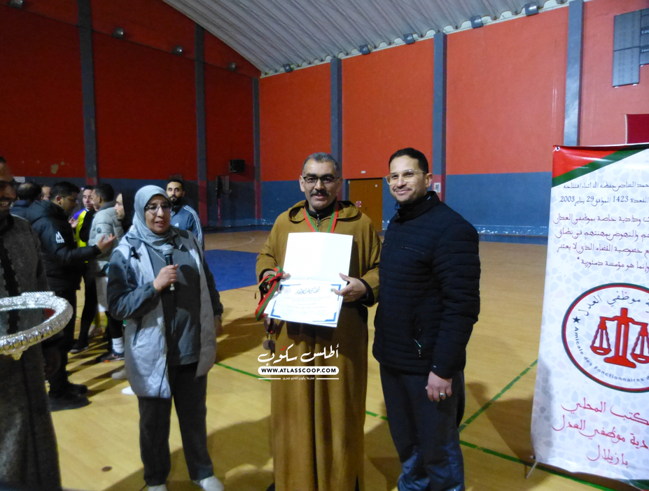 اختُتم مساء الخميس 22 رمضان المبارك، الموافق لـ12 مارس 2026، بقاعة الرياضات بمدينة أزيلال، الدوري الرمضاني الخاص بأسرة العدل بالمحكمة الابتدائية بأزيلال، الذي نظم تحت شعار “أسرة العدالة متماسكة ومتحدة”، وسط أجواء رياضية مميزة جسدت روح التآزر والتلاحم بين مختلف مكونات أسرة العدالة.
