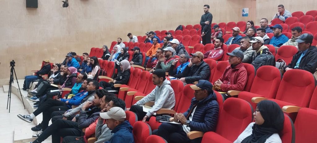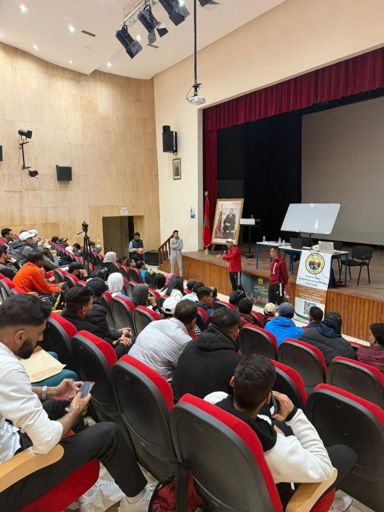 وفي الفترة المسائية، انتقل المشاركون إلى الجانب التطبيقي بالقاعة المغطاة، حيث تم التركيز على التمارين الميدانية وتقنيات التحكيم، ما أتاح للمستفيدين فرصة ترجمة المعارف النظرية إلى ممارسات عملية داخل الملعب.