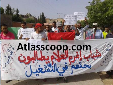 وقد استقبلهم الكاتب العام للجماعة الذي استمع الى مطالب الساكنة وتعهد برفعها الى المسؤولين و المتمثلة في غياب عدد هائل من المرافق الاجتماعية والشبابية والبيئية والاقتصادية، ووقفوا على الكارثة التي يسببها معمل الاسمنت بالقرب من المدينة و الذي يسبب اضرارا بيئية وصحية للمواطنين وما زاد الطين بلة هو حرمان ساكنة اغرم العلام من الشغل بهذا المعمل خاصة وان الحق في الشغل يضمنه الدستور المغربي . وكانت كل تدخلات الحاضرين تصب في الحرمان والتهميش الذي تعاني منه المنطقة.