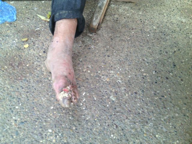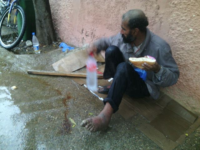 على مسافة صفر من بوابة المستشفى الجهوي لبني ملال، حط مشرد مغربي رحاله، بعد أن أصيب بمرض جلدي خطير، حيث بدأ ينتشر في مختلف أنحاء قدمه.