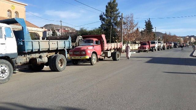في خطوة تصعيدية و غير منتظرة ،خاض ارباب الشاحنات لمنطقة ايت اسكوكو باقليم خنيفرة ،اعتصاما مساء يوم الاحد 07 فبراير 2016 بمدينة مريرت ،ضد عنترية صاحب شاحنة يدعي انه فوق القانون و يتمتع بعلاقات و خصوصا مع مسؤول رفيع المستوى في جهاز الدرك الملكي حسب تصريحات ارباب الشاحنات للجريدة .