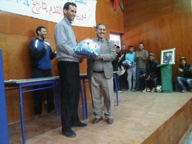 وفي هذا الاطار اقيم يومه السبت 13 فبراير 2016 بقاعة دار الشباب ,حفل توزيع الجوائز على الفائزين .الذي افتتح بالنشيد الو طني , تلته ايات بينات من الذكر الحكيم , ثم كلمة باسم اللجنة المنظمة ورئيس الجمعية الذي شكر فيها الفرق المشاركة على الروح الرياضية التي ابانوا عنها , كما شكر كل من ساهم من قريب او بعيد في انجاح هذه التظاهرة الرياضية.