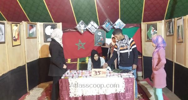 افتتحت فعالياته بتنظيم ورشات لفائدة الأطفال واليافعين والشباب في الفن التشكيلي والمعامل التربوية من تأطير الأستاذ: جواد سويس، ليتم في اليوم الموالي قص شريط المعرض الفلسطيني من قبل رئيس الجماعة الترابية لأولاد سعيد الوادي بحضور السيد القائد وشخصيات بارزة في مجالات متنوعة كما عرف حضورا مكثفا للشباب والأطفال .استهل السيد: علال معطاوي رئيس الجمعية كلمة افتتاحية بإلقاء كلمة رحب فيها بالضيوف الحاضرين وتحدث عن إشعال شمعة الفضاء الجديد الذي ضم المعرض واعتباره نواة أولى لإحداث دار الشباب بالمنطقة كما تحدث عن تضامن الشعب المغربي المطلق مع الشعب الفلسطيني ،مثلما يتشبثون بقضية الصحراء المغربية ورفضهم لكل أنواع المساس بالوحدة الترابية،منددا في ختام كلمته هاته بتصريحات بان كيمون “الاستفزازية والمتحيزة” ازاء قضيتنا الوطنية الاولى .ليفتح المجال أمام الحاضرين لزيارة المعرض الذي يضم أروقة متنوعة:شخصيات بارزة، مواضيع فلسطينية، كتب، صور، خرائط، لوحات تشكيلية، معامل تربوية، معروضات فلسطينية، رسوم تخطيطية،