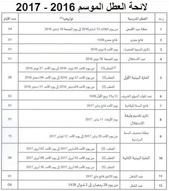 أعلنت وزارة التربية الوطنية والتكوين المهني يومه الجمعة 17 يونيو عن المقرر الوزاري المتعلق بتنظيم الموسم الدراسي 2016 – 2017 ومن أهم ما جاء فيه :