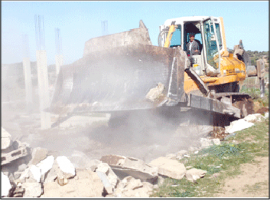 أشرف قائد مركز أفورار ليلة يوم الأحد 16 أكتوبر الجاري بحضور أفراد من القوات المساعدة و عون سلطة على هدم بناية بحي النصر .