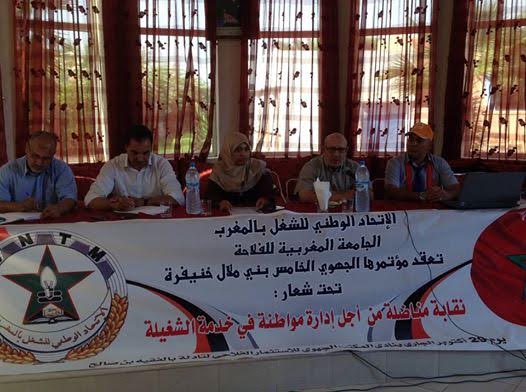 وانتخب المؤتمر الجهوي الذي ترأس أشغاله محمد دعنون الكاتب العام الوطني للجامعة المغربية للفلاحة ، والمنعقد يوم أمس السبت 29 أكتوبر 2016 بمدينة الفقيه بن صالح تحت شعار: “نقابة مناضلة لأجل إدارة مواطنة في خدمة الشغيلة” ، و حضره كل من بوعبيد اللبيدة عضو الفريق النيابي لحزب العدالة والتنمية والبرلماني المنهية ولايته عبد الكريم النماوي ، (انتخب) محمد لهرو نائبا أولا ومحمد الشعبي نائبا ثانيا.