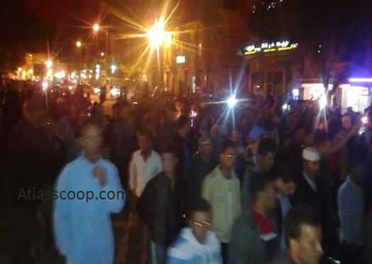 استجابة لنداء المجتمع الحقوقي الداعي الى تنظيم مسيرات بالمدن المغربية احتجاجا على جريمة مقتل سماك الحسيمة، نظمت فعاليات المجتمع المدني بأزيلال مساء اليوم الاحد مسيرة حاشدة جابت الشارع الرئيسي بالمدينة، كما وقفت بساحة “بنلبروج” قرب ” الدينصور” ورفعت شعارات مناهضة ومنددة بما جرى بالحسيمة بعد مقتل بائع السمك محسن فكري.