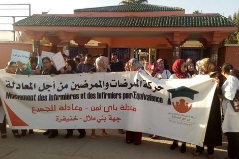 على غرار عدد من المدن المغربية، شهدت مدينة بني ملال وقفة احتجاجية لمجموعة من الممرضين والممرضات، عبروا من خلالها عن رفضهم المشاركة في امتحان الكفاءة المهنية لخريجي السلك الأول من ذوي السنة الثالثة بعد البكالوريا، المنظم من طرف وزارة الصحة للولوج إلى السلم العاشر.