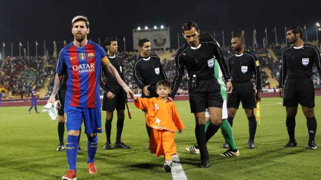 وأظهرت الصور ميسي وهو يصافح أحمدي، في حين قام بحمله في الشريط المصور، وهو محاط بلاعبي برشلونة ومسؤولين قطريين، ونقلت اللجنة في بيان عن الطفل الافغاني إنه “سعيد جداً لكوني التقيت ببطلي المفضل، كان الأمر بمثابة حلم بالنسبة لي”.