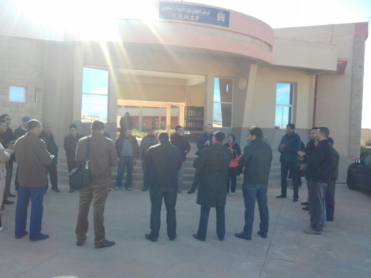 في إطار تنفيذ البرنامج النضالي الذي سطرته الهيئة الوطنية لمتدربي وخريجي الإدارة التربوية، قام فوج بني ملال هذا اليوم بوقفة احتجاجية بالمركز الجهوي لمهن التربية والتكوين، وذلك لمطالبة الوزارة الوصية للاستجابة للملف المطلبي للهيئة والذي من بينها الإفراج عن الإطار المناسب لمستوى التكوين الممهنن الذي يتلقاه كافة الأطر الإدارية المتدربة بمختلف المراكز على الصعيد الوطني، كما تمت قراءة البيان الوطني للهيئة من طرف منسق المسلك.