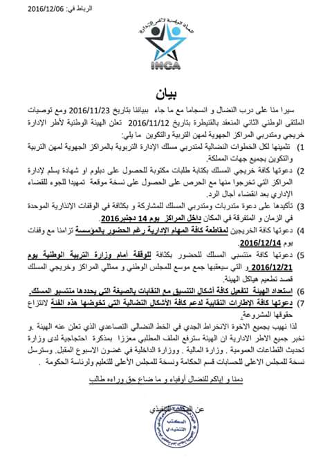 بيان الوقفة الاحتجاجية للأطر الإدارية المتدربة مركز الرباط