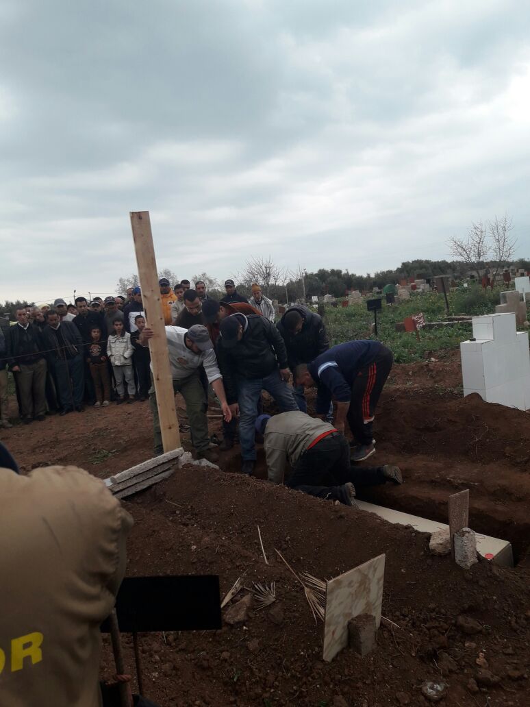 جنازة مؤثرة للمرحوم يماني محمد حيث وصلت الى مسقط راسه حوالي الساعة الثالثة بعد الزوال من يومه الثلاثاء 31 يناير الجاري وعاينها رئيس سرية الدرك الملكي قبل نقلها الى منزل العائلة للقاء آخر نظرة وداع لها من طرف امه و اخوته وعائلته , بعدها وفي موكب جن ائزي مهيب نقلت الى مسجد الحي الاداري حيث تمت صلاة العصر والجنازة .