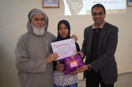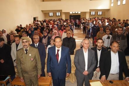 نظمت ثانوية الفارابي التأهيلية بأولاد عياد إقليم الفقيه بن صالح ، بشراكة مع المجلس الجماعي لأولاد عياد وبدعم من جمعية أباء وأمهات وأولياء التلاميذ ومجموعة مدارس النجيب للتعليم الخصوصي مساء يوم الجمعة الماضي 24 مارس 2017 بدار الثقافة حفلا بهيجا للاحتفاء بالتلاميذ الحاصلين على المعدلات الأولى في مختلف المستويات والشعب بثانوية الفارابي التأهيلية والتي تميزت للسنة الثانية على التوالي بهيمنة التلميذات على المعدلات العالية والمراتب الأولى.