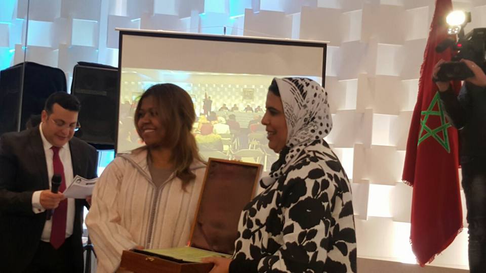 القاضية حجيبة البخاري عضوة المجلس الأعلى للسلطة القضائية تسلم جائزة المرأة القاضية للمستشارة أمينة ناعمي