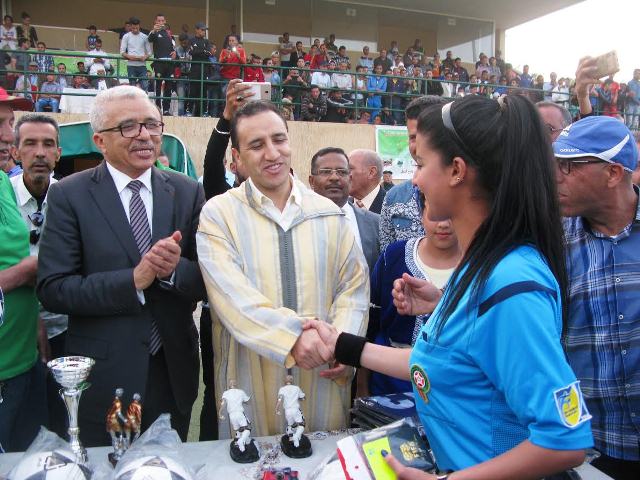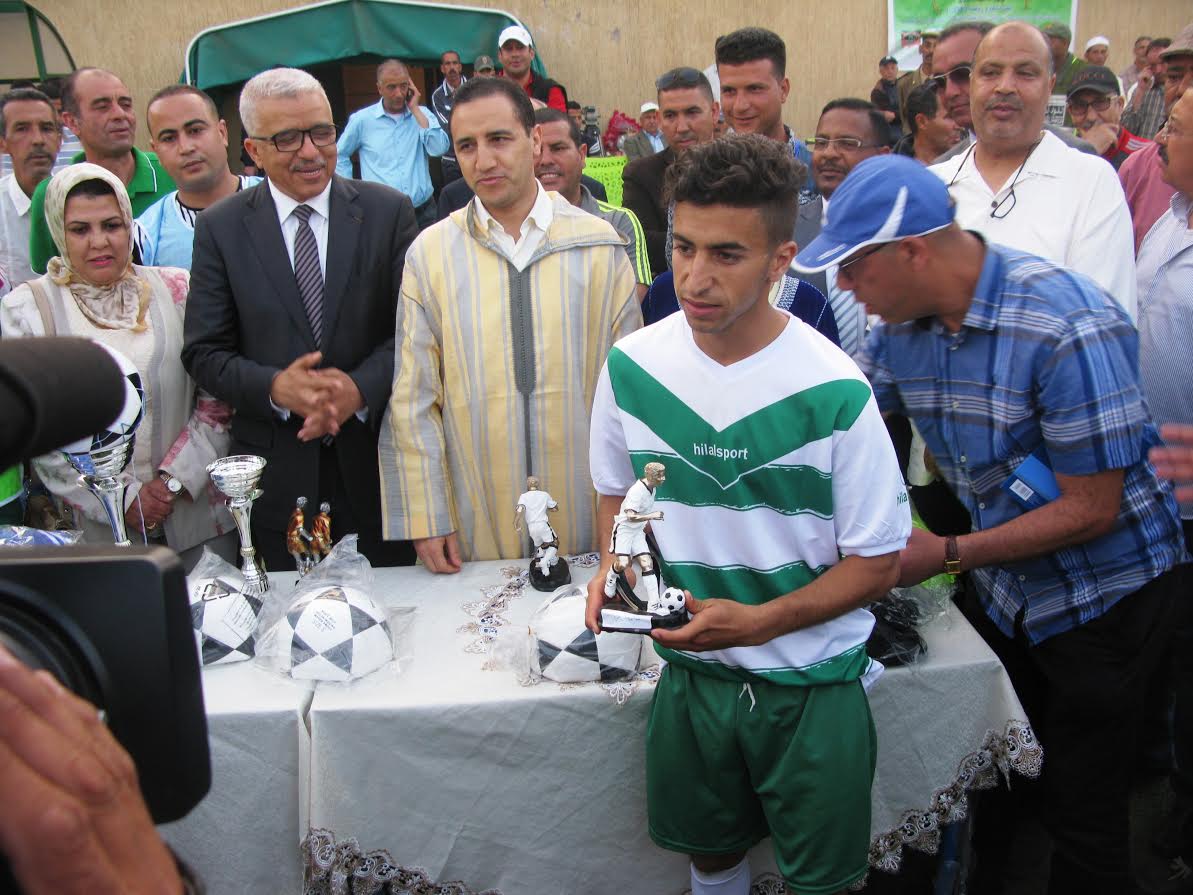 بمناسبة اختتام الملتقى الربيعي الاول للجماعات الترابية التابعة لدائرة بني ملال ( فم اودي – اولاد امبارك – اولاد اكناو – سيدي جابر – اولاد اعيش – فم العنصر ) اشرف محمد دردوري والي جهة بني ملال خنيفرة وعامل اقليم بني ملال وابراهيم مجاهد رئيس مجلس جهة بني ملال خنيفرة مساء يوم الاحد 02 ابريل 2017 بالملعب الشرفي لبني ملال على توزيع عدد من الجوائز على الفرق الرياضية لكرة القدم المشاركة ضمن هذه التظاهرة وكذا على حكام المقابلة النهائية التي جمعت فريقي جماعة اولاد اعيش الفائز بهذا الملتقى وجماعة فم اودي .