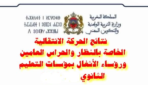 نتيجة الحركة الإدارية الخاصة بالحراس العامين بمؤسسات التعليم الثانوي الإعدادي