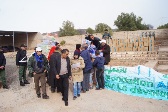 أشرفت مؤسسة ” ألف ألف ” للتنمية ، اليوم الخميس 18 يناير 2018 بالجماعة القروية أيت واعرضى إقليم أزيلال بحضور رئيسها المصطفى الرداد و أعضائها و ممثلي السلطة المحلية والأمنية ورئيس جماعة أيت واعرضى الحسين الناجي، على توزيع مساعدات لفائدة 300 أسرة ضمن المحطة الأولى من العملية التي تستهدف العديد من المناطق الجبلية بإقليم أزيلال لمساعدة الساكنة على مواجهة موجة البرد والتخفيف من آثارها بهذه المناطق ذات التضاريس الوعرة، والأكثر تضررا من موجة البرد وتساقط الثلوج في هذه الفترة من السنة .