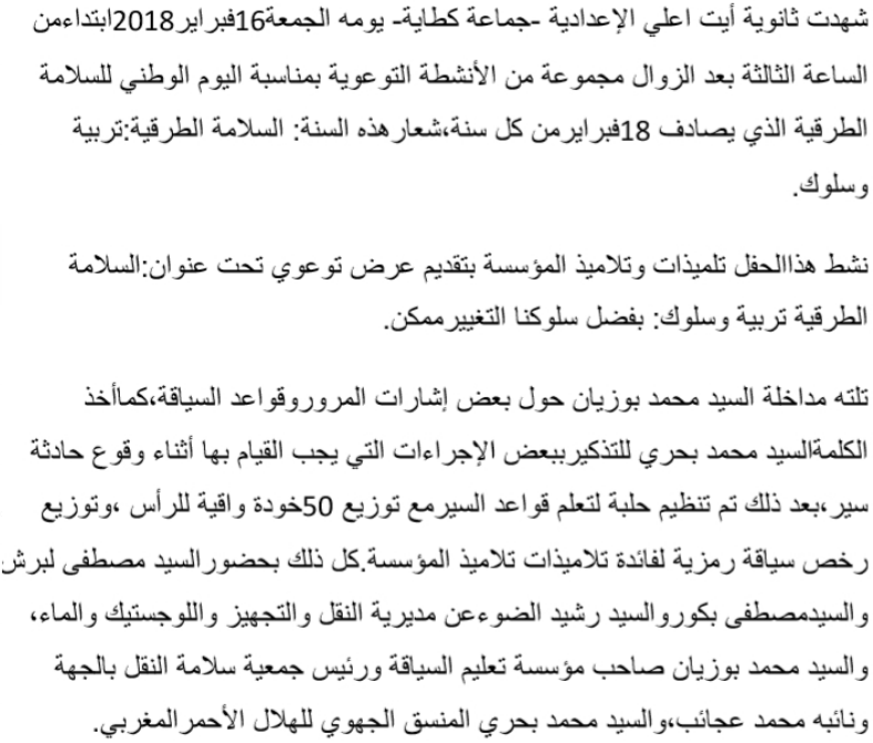 ثانوية ايت اعلي الاعدادية بكطاية إقليم بني ملال تحتفل باليوم الوطني للسلامة الطرقيةتربية وتكوين إدارة الموقع نشر في 20 فبراير 2018 الساعة 1 و 58 دقيقة أطلس سكوب ـ مشاركة بفايسبوكFacebookFacebookمشاركة بتويترTwitterTwitter مشاركة بواتسابWhatsAppWhatsApp Share to ارسال ايميلEmailEmail مشاركة بلينكدانLinkedInLinkedInمشاركة بمسنجرMessengerMessenger طباعةPrintطباعة رابط المشاركة :