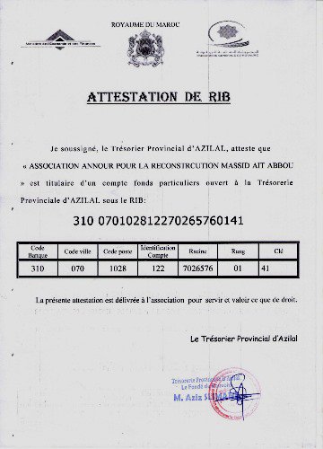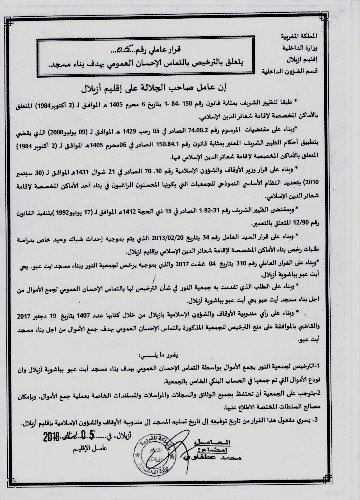 نداء للمساهمة في بناء مسجد دوار أيت عبو بمدينة أزيلال، تسهر على تنفيذه جمعية النور.