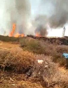 وشوهدت عناصر الوقاية تحاول السيطرة على الحريق قبل ان يأتي على جزء من احتياطي الاعلاف بالمنطقة.