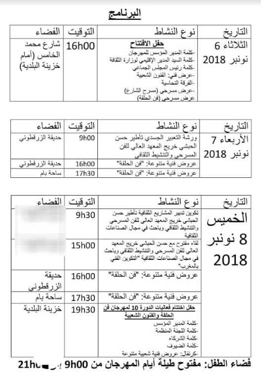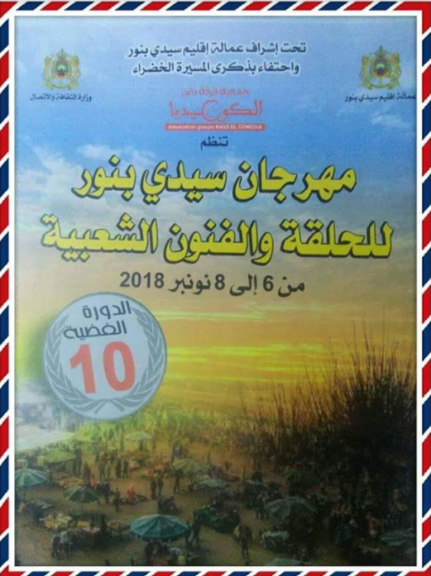 يشارك الفنان حسن الحبشي ومدير دار الثقافة بأزيلال في ورشات فنية مكثفة ضمن فعاليات الدورة العاشرة لمهرجان الحلقة و الفنون الشعبية بسيدي بنور .