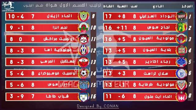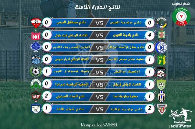 نتائج وترتيب القسم الاول هواة شطر الجنوب بعد إجراء الجولة الثامنة جاء على الشكل التالي: