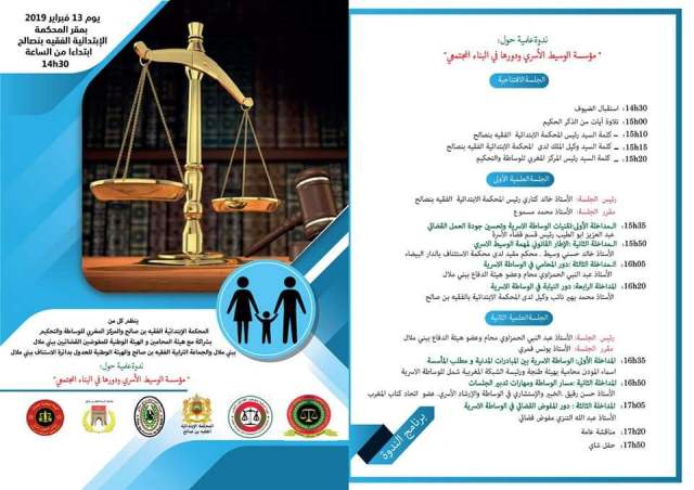 في حين مداخلة الأستاذ عبد الله التنزي مفوض قضائي تناولت موضوع دور المفوض القضائي في الوساطة الأسرية.