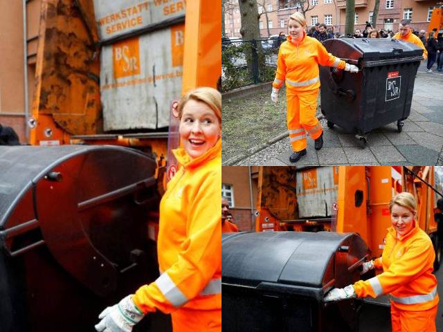 وبحسب وكالة الأنباء الألمانية، شاركت وزيرة الدولة الألمانية لشئون الأسرة وكبار السن والمرأة والشباب، فرانزيسكا جيفى عمال شركات النظافة فى جمع القمامة من أمام المنازل احتفالا باليوم العالمى للمرأة.
