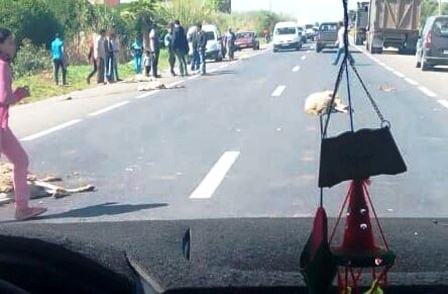 عرفت الطريقة الوطنية الرابطة بين مراكش وبني ملال حادثا خطيرا، حيث دهست حافلة ركاب كانت قادمة من مدينة مراكش في اتجاه مدينة بني ملال قطيع أغنام يوم الخميس 14 مارس الجاري و بالضبط على الساعة الثانية عشرة زوالا. الحادث الذي وقع بين ” أولاد سالم 1″ و “أولاد سالم 2” بجماعة سيدي حمادي إقليم الفقيه بن صالح أسفر عن نفوق (10) أغنام.