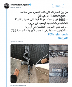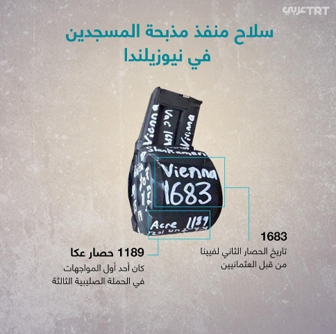 نشطاء اعتبروا أن هذه الكلمات رسائل من منفذ الهجوم تنم عن “كراهية تجاه جميع المسلمين”، مؤكدين استدلاله بتواريخ معارك مر عليها ما يزيد على خمسة قرون، “فهذا دليل على أنه يحمل كراهية وحقدا دفينين رغم أن المسلمين لم يقتلوا نساء أو أطفالا، ولم يحرقوا بيوتا، ولم يخلفوا موجات لجوء”، وفق قولهم.