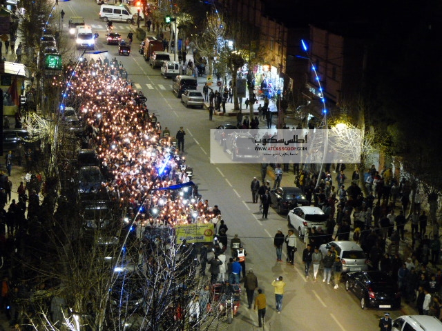 وعرفت مسيرة الاثنين بمدينة أزيلال، رفع شعارات ضد الحكومة و’الفساد’ والمطالبة بتحسين ظروف المعيشة، وانتهت بمسيرة الشموع، التي جابت أهم شوارع مدينة أزيلال.