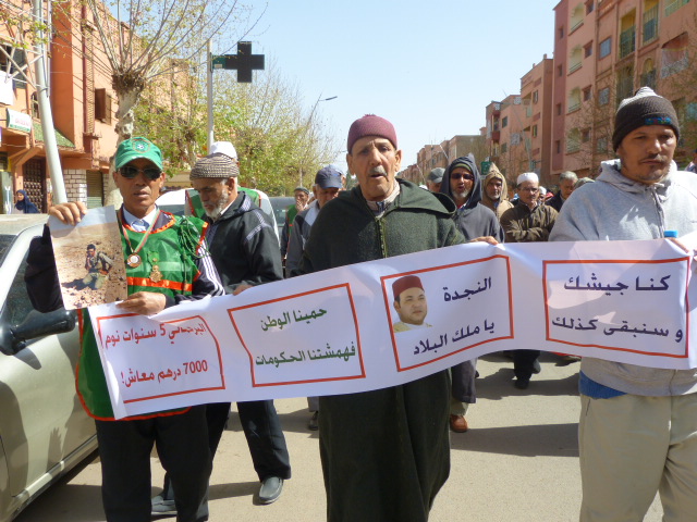 خرج العشرات من المتقاعدين العسكريين وأبناء وأرامل شهداء الجيش المغربي للتظاهر في شوارع أزيلال أمس الاثنين 25 ماري الجاري، للتنديد بأوضاعهم المادية والإجتماعية المزرية، وناشدوا الملك محمد السادس التدخل من أجل تحسين أوضاعهم.