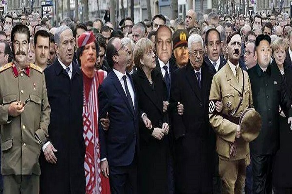 آخرون كتبوا بسخرية ” بما أن الارهابي نتنياهو شارك ضد الارهاب، فقد كان من الاحسن لو بعث القذافي والنازي هتلر لكي تكتمل تشكيلة الفريق المندد بالارهارب”. وذيل اخرون تدويناتهم ب” انهم يضحكون على الذقون والاميين من القادة العرب “.