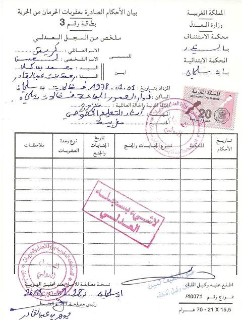 توصل الناشط في حركة 20 فبراير “لحسن كريش” يوم 26 من الشهر الجاري بقرار من رئيس اللجنة الإدارية لجماعة فضالات ببنسليمان بقرار التشطيب عليه من اللائحة الانتخابية العامة ، وكشفت الرأي أن اللجنة الإدارية بررت قرارها بكون لحسن كريش فاقدا للأهلية، وهو ما يتعارض مع السجل العدلي الخالي من السوابق الذي حصل عليه من محكمة الاستئناف ببنسليمان.