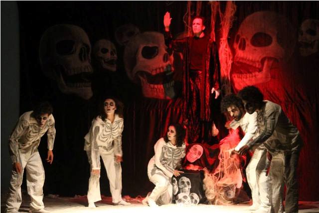 وقدمت فرقة الأوركيد بمدينة طاطا، عرضها المسرحي “مدينة الجماجم” وسط حضوري وازن لمجموعة من رواد المسرح والمثقفين على رأسهم الكاتب المسرحي ورائد المسرح الاحتفالي الأستاذ عبد الكريم برشيد، الذي عبر عن اعجابه الكبير بأداء الفرقة، وبجودة العرض المسرحي، على مستوى قوة النص والتشخيص الباهر لأعضاء الفرقة، وكذا المستوى التقني الذي أبدعه الطاقم المرافق للفرقة.