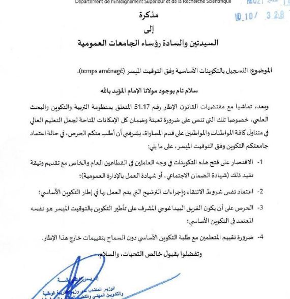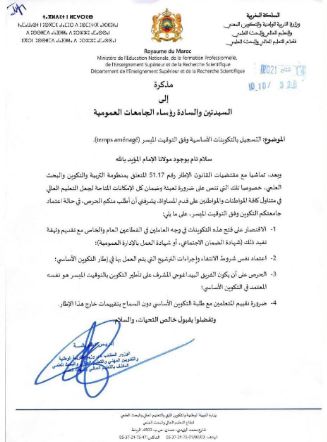 مذكرة الى رؤساء الجامعات حول التسجيل بالتكوينات الاساسية