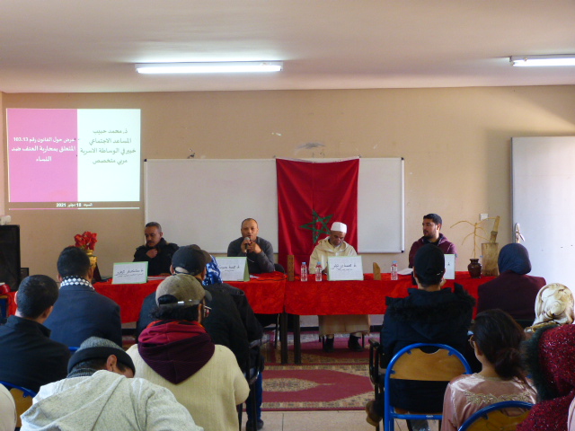 واستعرض متدخلون خلال الندوة(السادة: محمد بنعلي ممثل المجلس العلمي لأزيلال، محمد حبيب مساعد اجتماعي قضائي بقسم قضاء الاسرة بالرباط، مصطفى الزهري مندوب التعاون الوطني، ايت بلا يوسف مساعد اجتماعي بالمستشفى الاقليمي لأزيلال)، استعرضوا جهود المغرب على المستوى التشريعي والقضائي والقانوني للتصدي لظاهرة العنف ضد النساء ، مشيرين بهذا الخصوص إلى قانون رقم 103.13 المتعلق بمحاربة العنف ضد النساء، ومختلف الآليات ذات الصلة…
