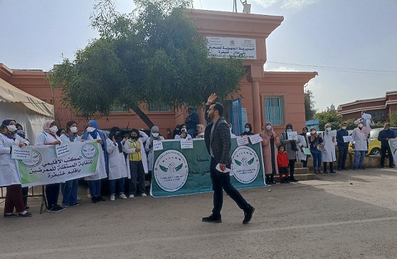 وأكدت تدخلات نقابيين خلال الوقفة أن قطاع الصحة بجهة بني ملال خنيفرة يعيش على صفيح ساخن، لما يواجهه الممرض منذ سنين من مشاكل تخص تدبير الموارد البشرية بالجهة كما أصبحت الاطر التمريضية تعيش الامرين بين سندان المشاكل اليومية في ظروف الجائحة ومطرقة غياب الاستقرار وذلك جراء العديد من الانتقالات غير المفعلة والتعيينات المؤقتة المرتجلة لوزارة الصحة خلال الجائحة والتي حاولت من خلالها سد الخصاص الذي لن يسد أبدا في غياب رغبة حقيقية في إصلاح المنظومة الصحية.